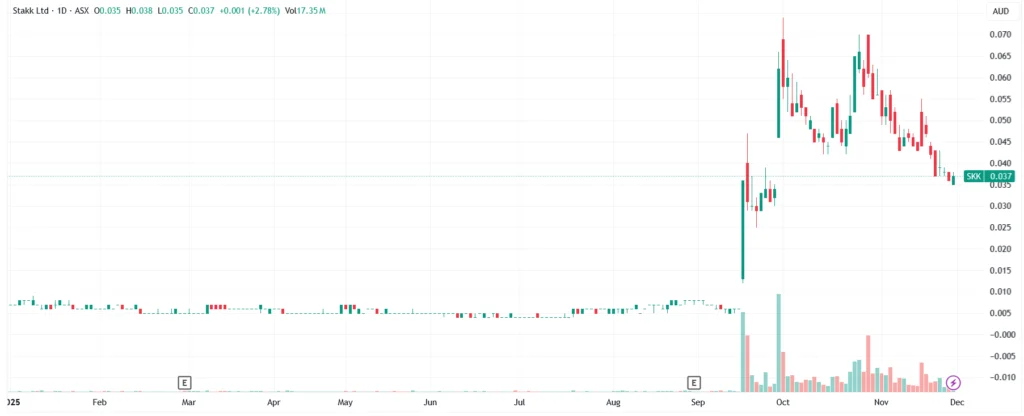 Stakk (ASX:SKK) Daily Price Chart (Source: Tradingview)