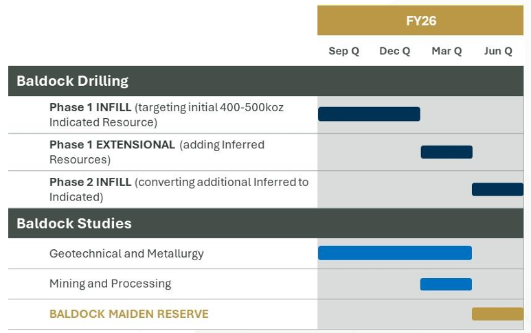 The drill program ensures constant catalysts. Every few weeks, new assays could hit the ASX. Infill at Baldock confirms continuity. Extensions along strike add ounces. Each result matters because it either builds the case for a strong maiden reserve or extends the resource base.